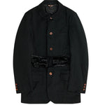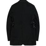 Lange einreihige Jacke mit Ausschnitt in der vorderen Mitte und kontrastierendem Rüschendetail.