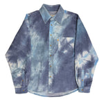 Hemd mit Knopfleiste aus sonnengebleichtem, blauem Knüpfbatik-Kord mit ERL-Signatur an der Brusttasche.