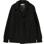 Dieser klassische Zweireiher aus gekochter Wolle hat ein fallendes Revers und kontrastierende Strick-Nylonärmel für eine moderne Anmutung. Die beiden schrägen Seitentaschen bieten Komfort, während das schlichte Design für Eleganz bei jeder Gelegenheit sorgt.