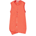 Überlange, ärmellose Feinstrickjacke mit asymmetrischer Knopfleiste.
