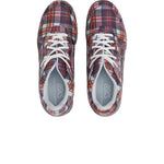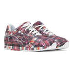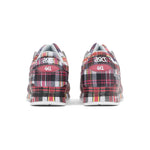 Der klassische Asics-Schuh, bei dem die einzelnen Schnitteile bereits vor dem Zusammensetzen mit dem Spring/Summer-2025-Karo bedruckt wurden.