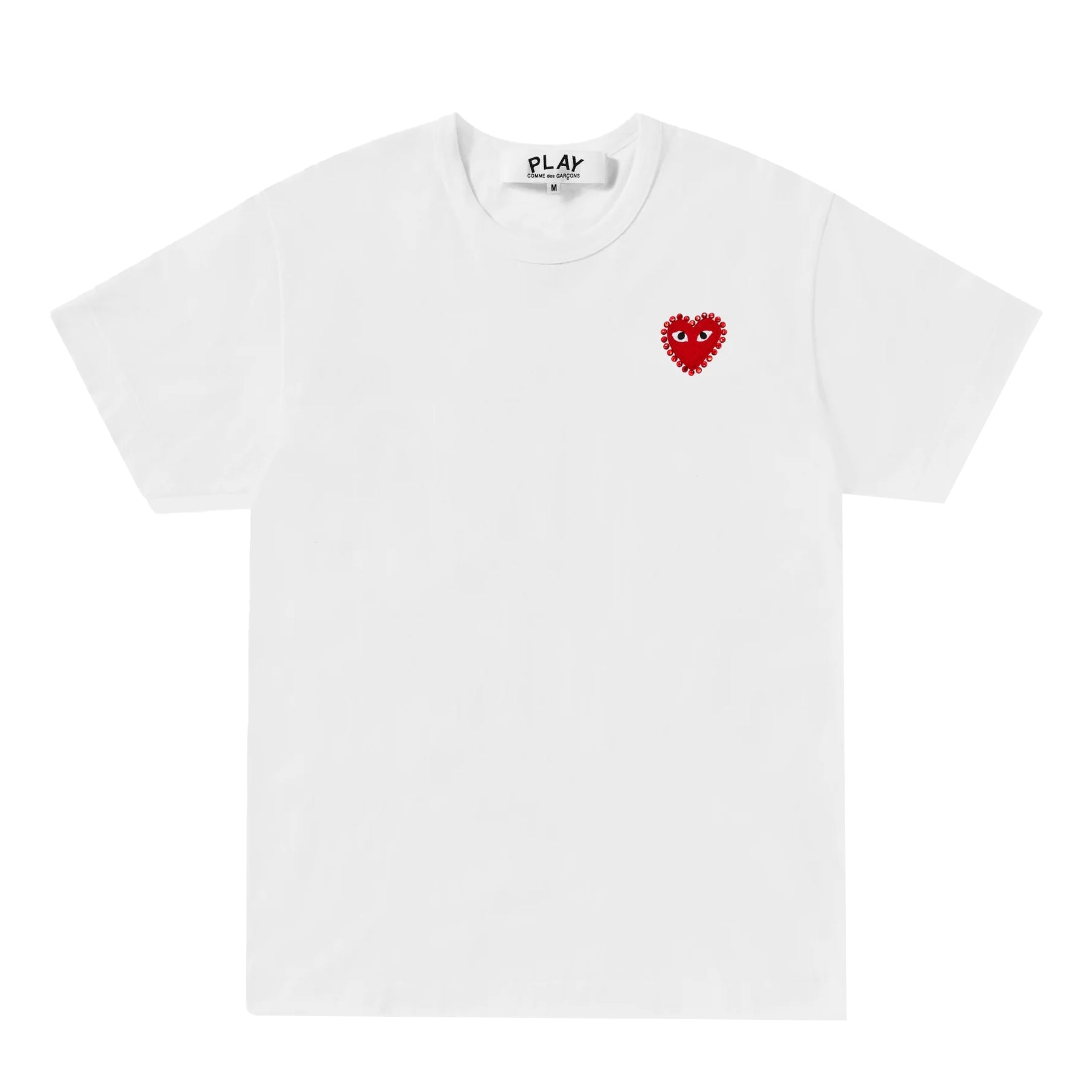 Klassisches Play CDG T-Shirt mit gesticktem Herz-Logo verziert mit Strasssteinen