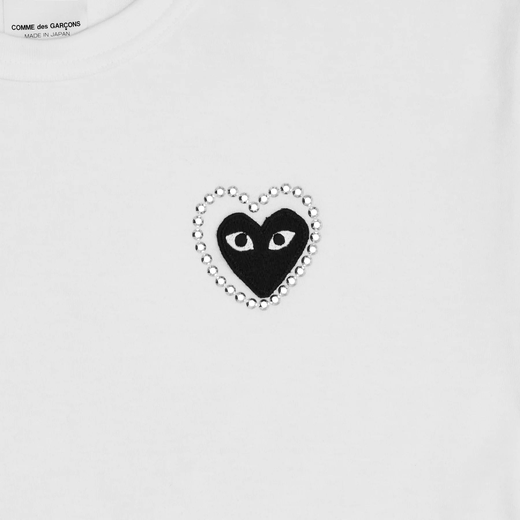 Klassisches Play CDG T-Shirt mit gesticktem Herz-Logo verziert mit Metallstrass