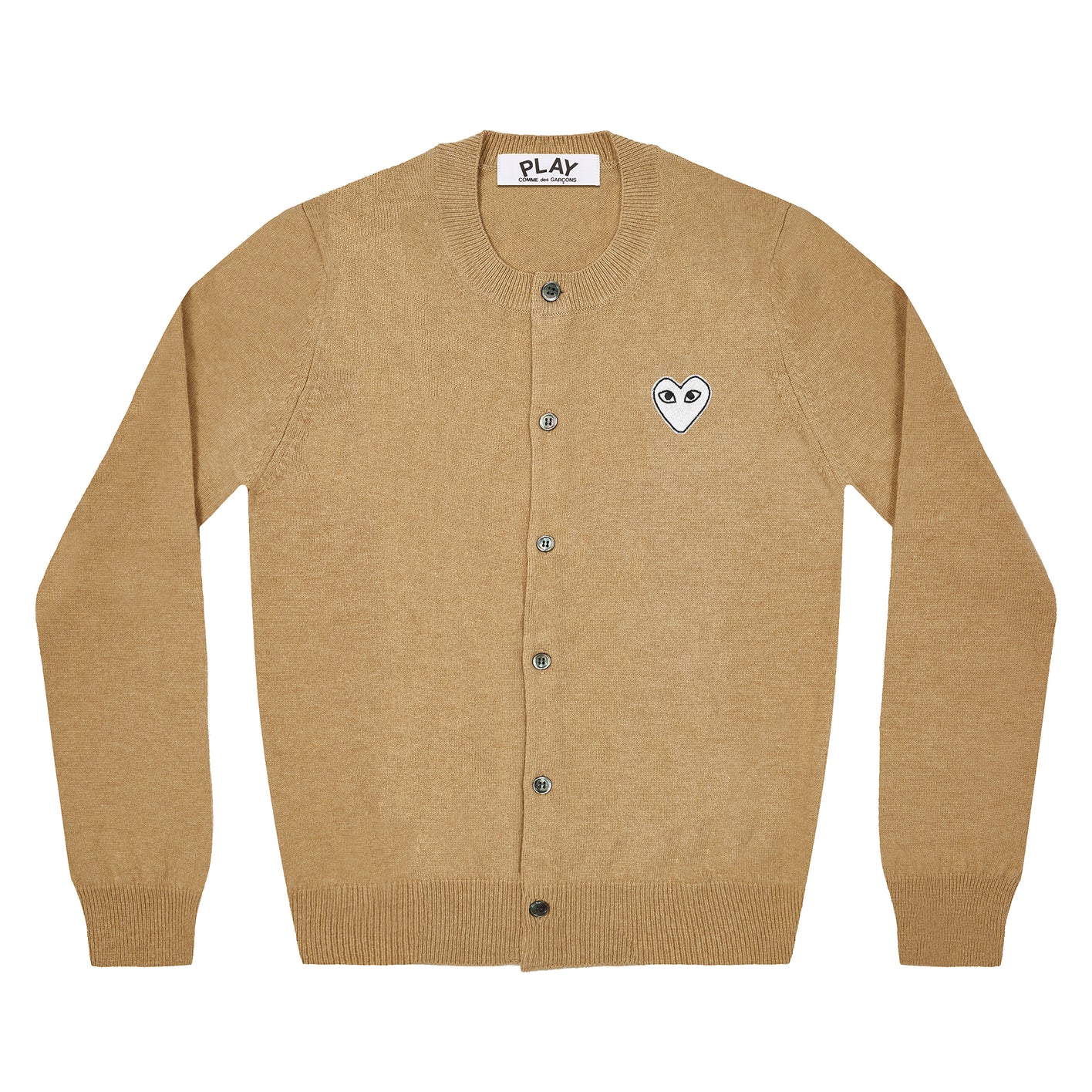 Play Comme des Garçons Cardigan - Light Camel / White Heart