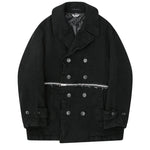 Zweireihiger Pea Coat aus gekochter Wolle mit durchgehendem, umlaufendem Reißverschluss zum Abnehmen des unteren Teils des Kleidungsstücks.