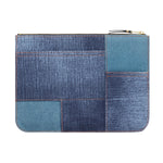 Reißverschlusstasche in einem Patchwork-Design aus verschiedenen Denim-Prints.