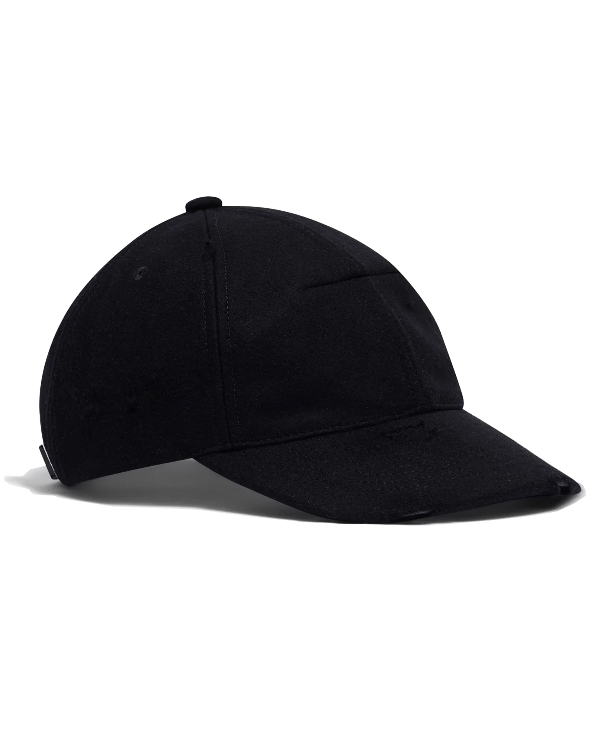 Klassische Baseballkappe im Used-Look mit gebogenem Schirm, abgerundeter Sechs-Panel-Krone und verstellbarem Verschluss hinten.