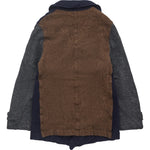 Wide collar Double breasted Side welt pockets Button adjusters at cuffs Lined Contrast sleeves Washed finish
