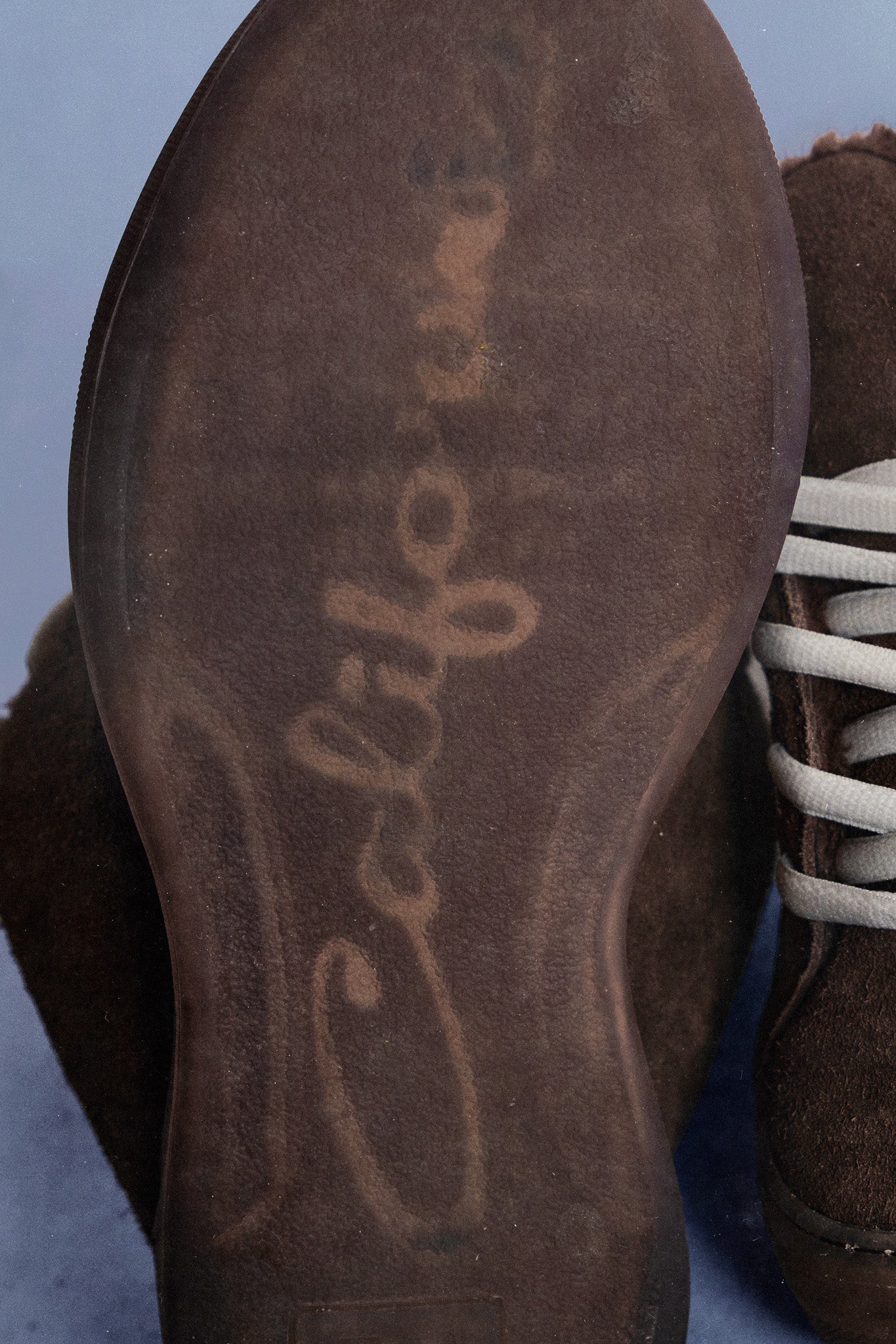 `Vamp` Skate-Schuh aus Rindsleder in Erdfarben. Mit Plüschfrottee gefüttert und gepolstert, sowie einer Gummisohle und einem California Design auf der Sohle.
