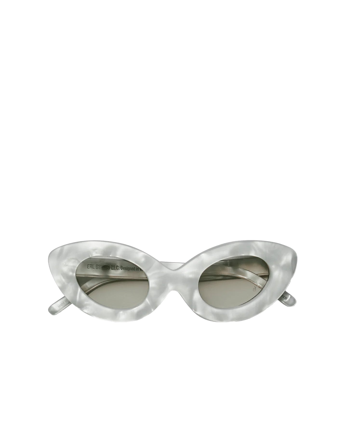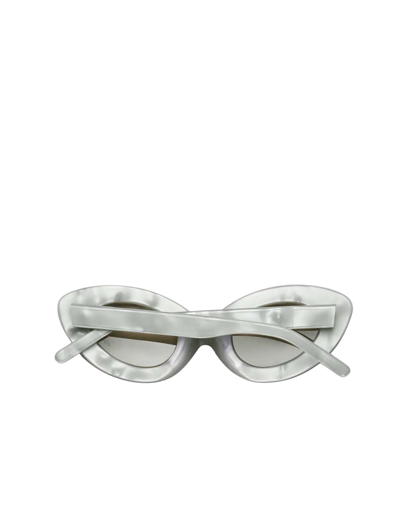 The Betty nods to classic 60’S cat eye frames with an exaggerated thickness that evokes classic comic book heroines. Matte mother of pearls acetate frames.