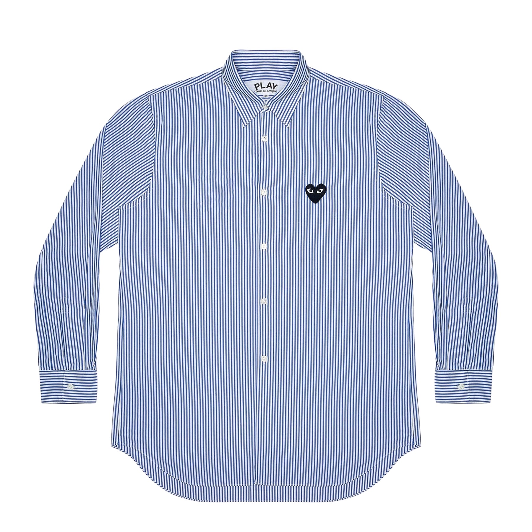 Play Comme des Garçons Shirt - Blue and White Stripes / Black Heart
