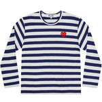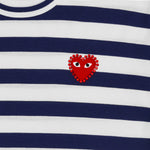 Play Comme des Garçons T-shirt - Blue White Stripes / Red Rhinestone Heart