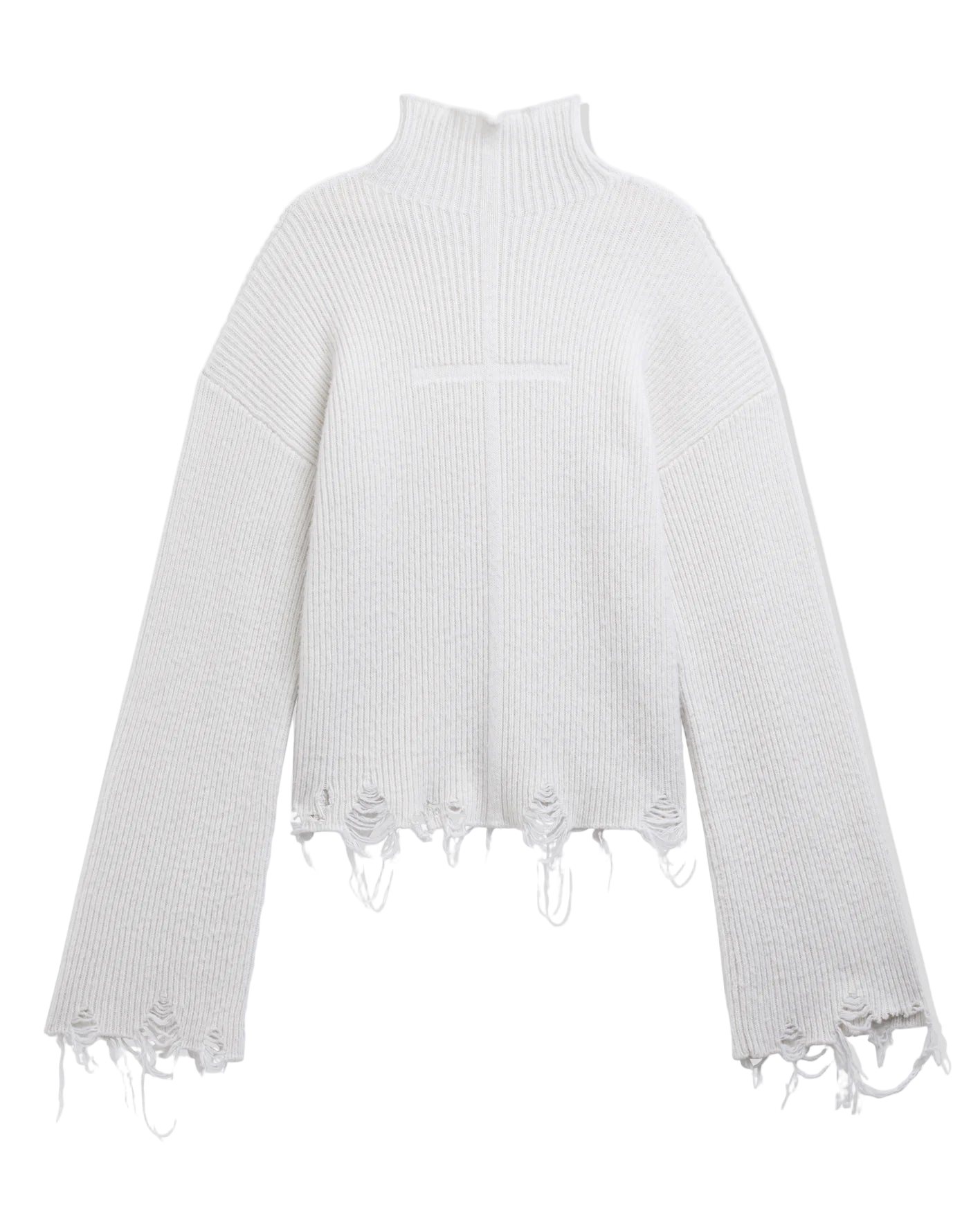 Grober Ripp-Strick-Pullover mit Gebrauchsspuren-Effekt