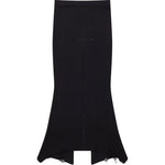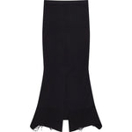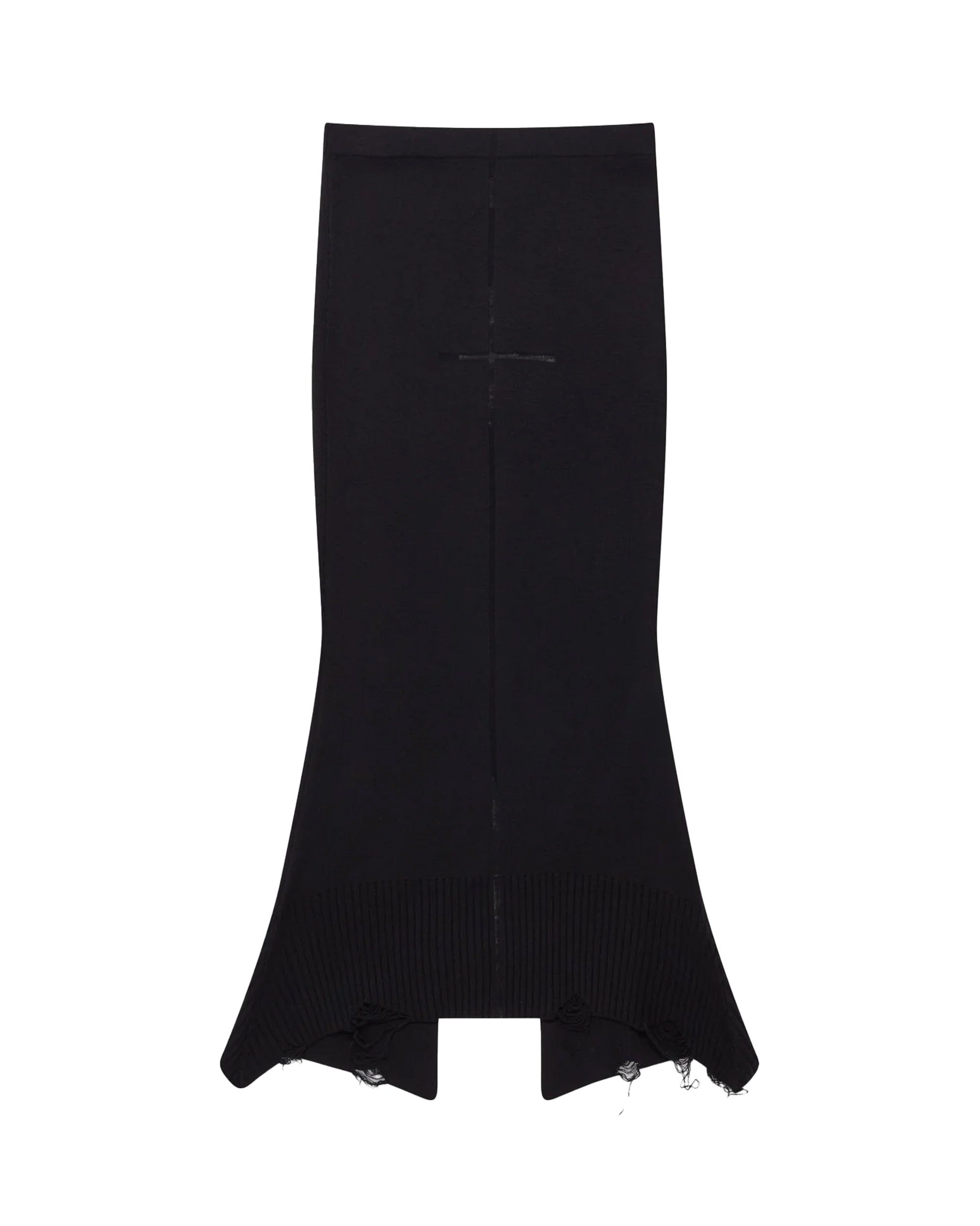 Skirt with an elasticated waistband and asymmetric hem with raw distressing and a back slit