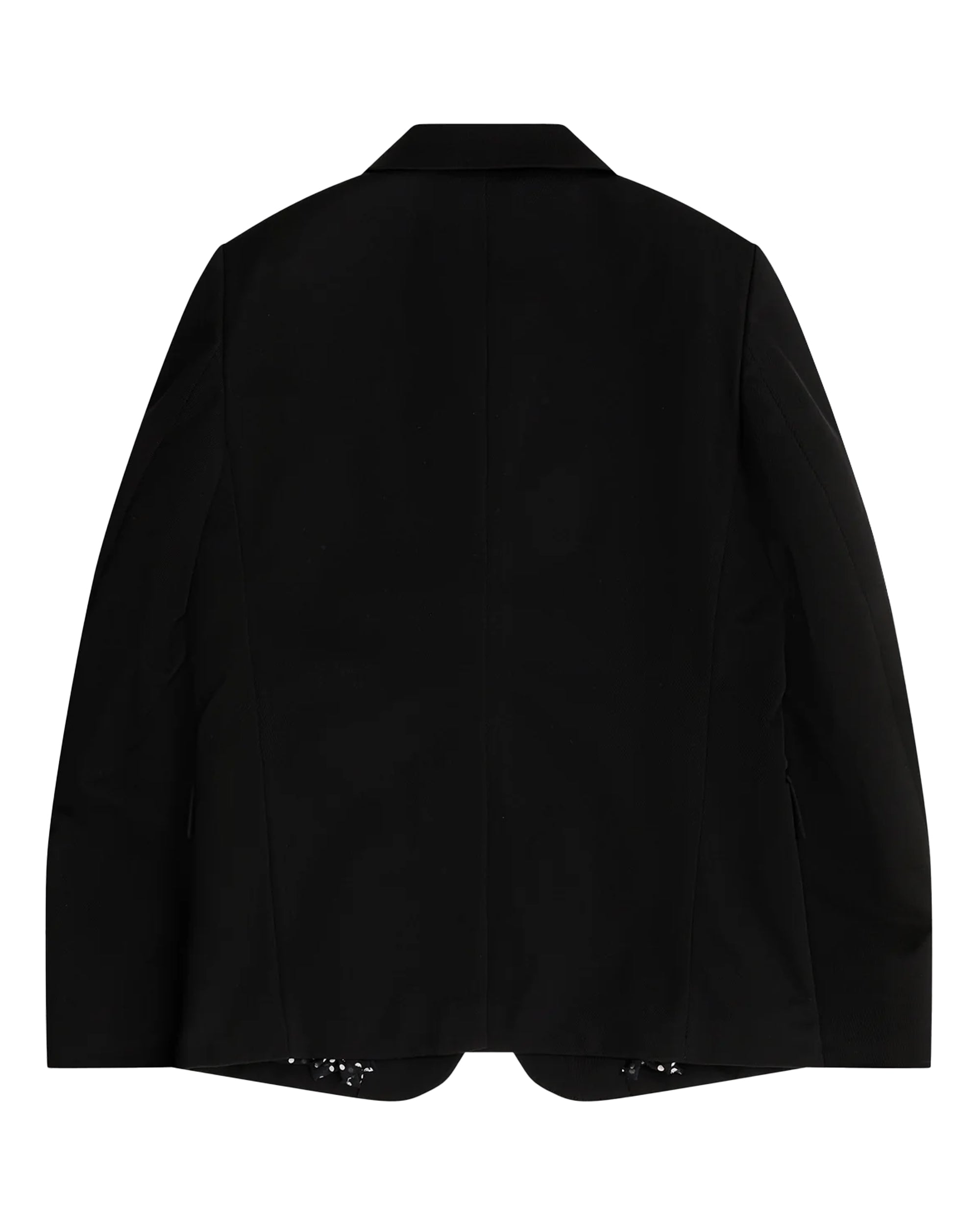 A reversible tailored jacket with a frilly georgette polka-dot lining to be turned outside.