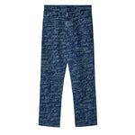 Jacquard-patterned denim with artwork by Ben Solomon, designer and artist from the legendary IRAK crew. The seeminingly random words and phrases are pulled from the biographical survery Sky High Farm asked their friends to fill out to steer the inpsiration for the collection.