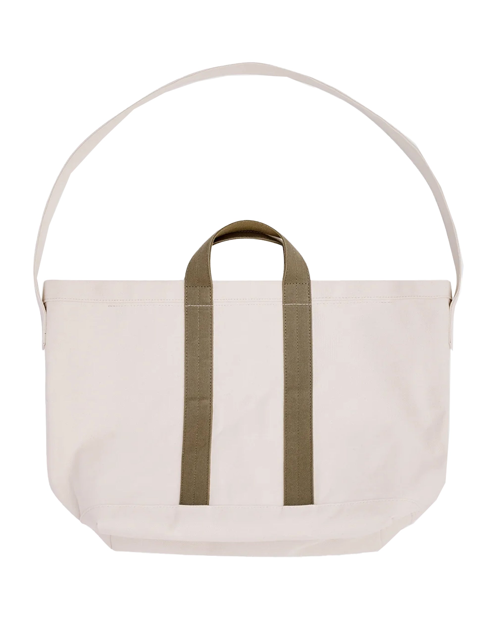 Geräumige Canvas-Tasche mit kontrastfarbenen Tragegriffen und Innenfächern.