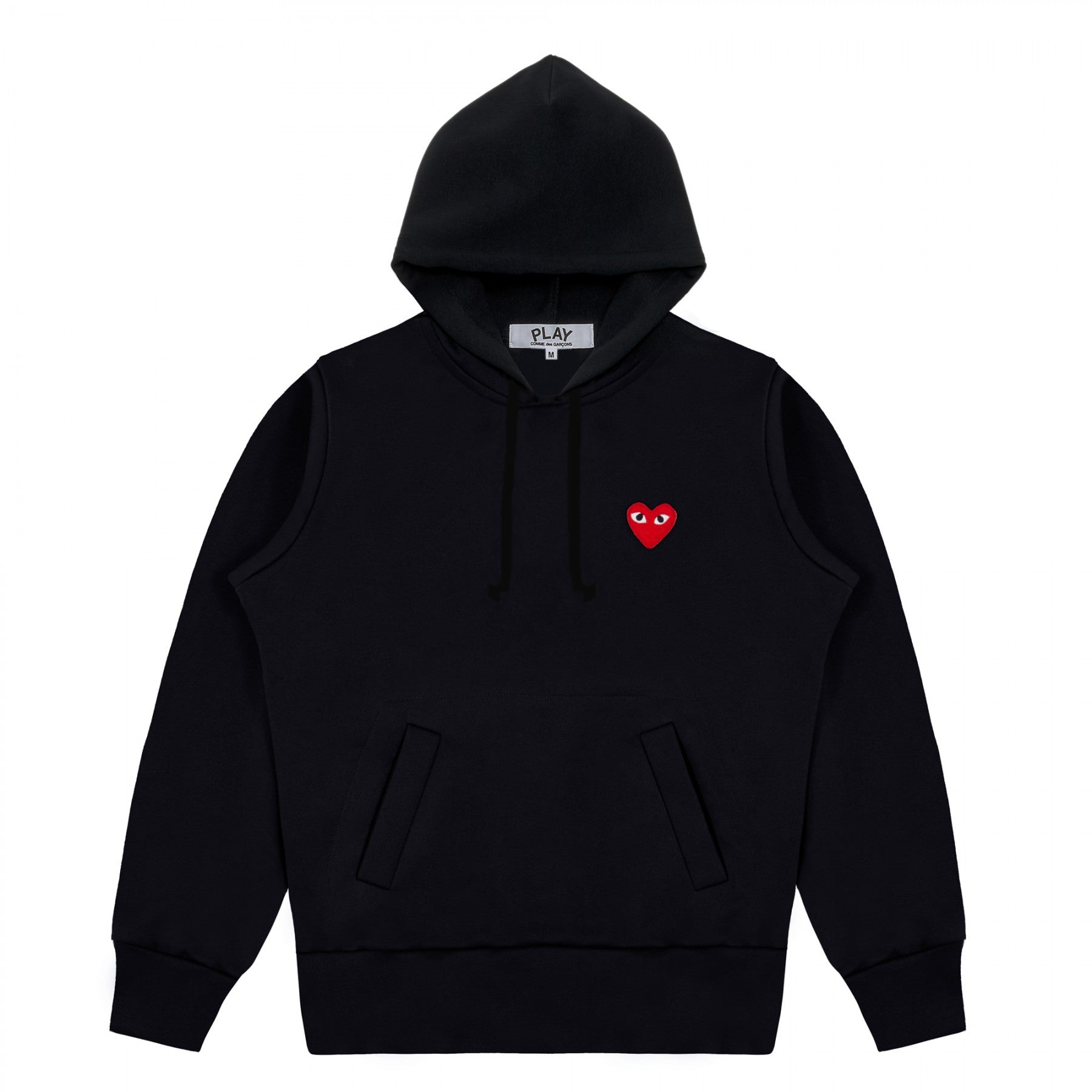 Play Comme des Garçons No Zip Hoodie - Schwarz / rotes Herz Logo